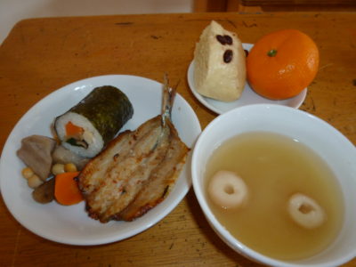 ・恵方巻き 白米 高野豆腐 干しいたけ 干ぴょう ほうれん草 人参 焼きのり