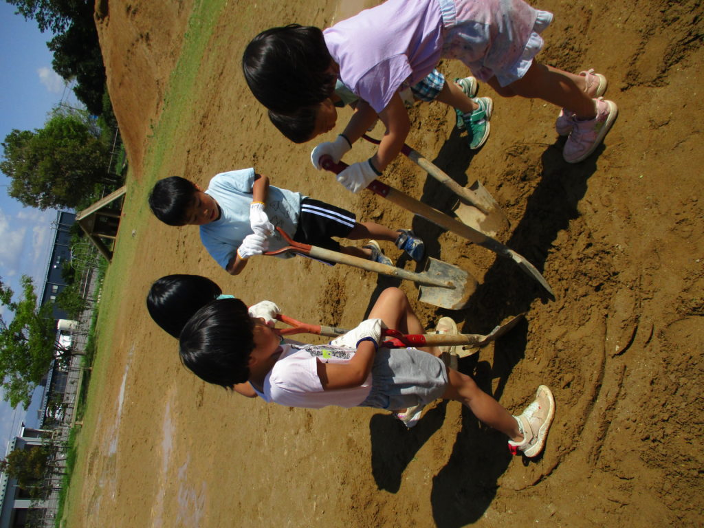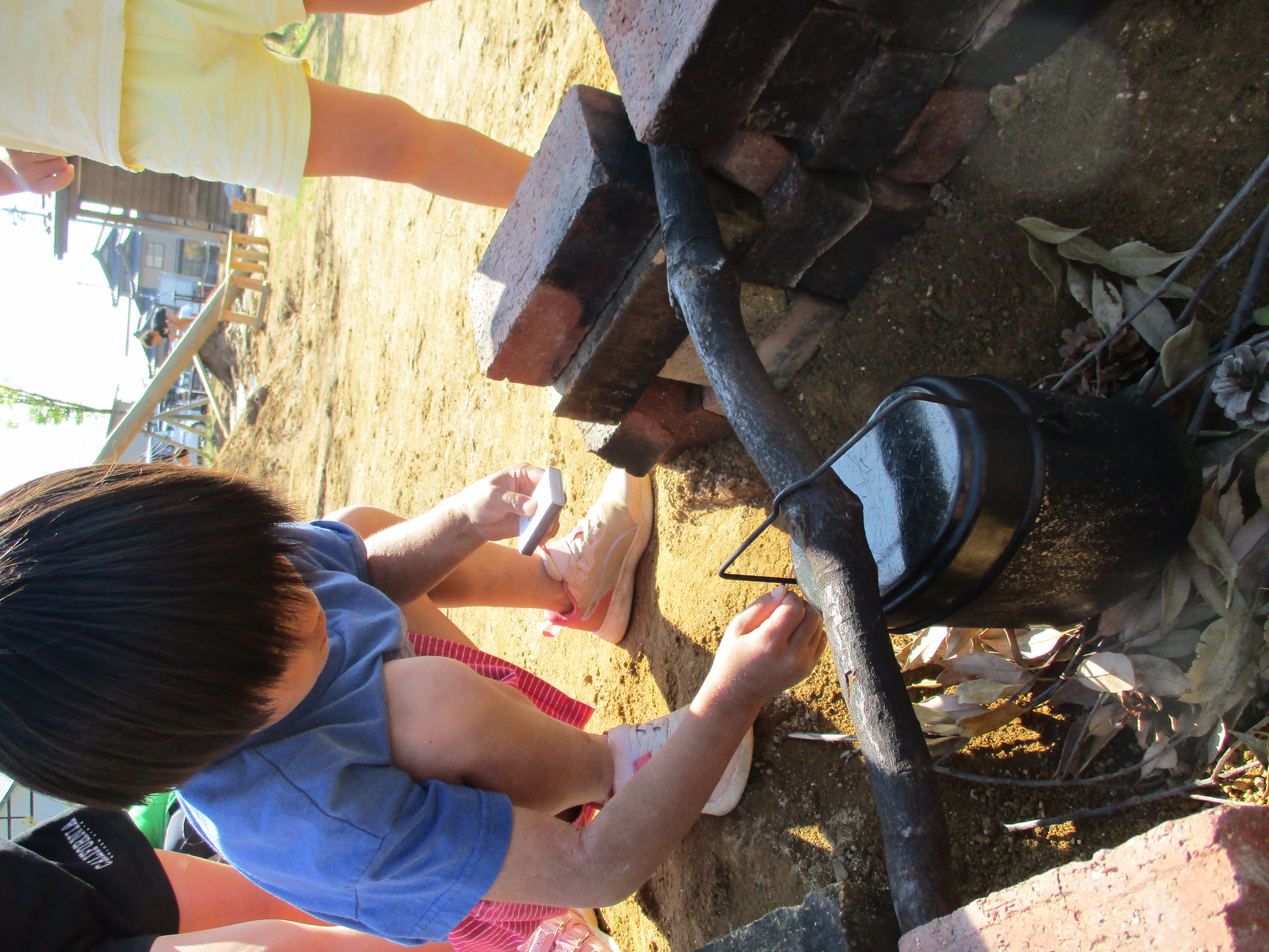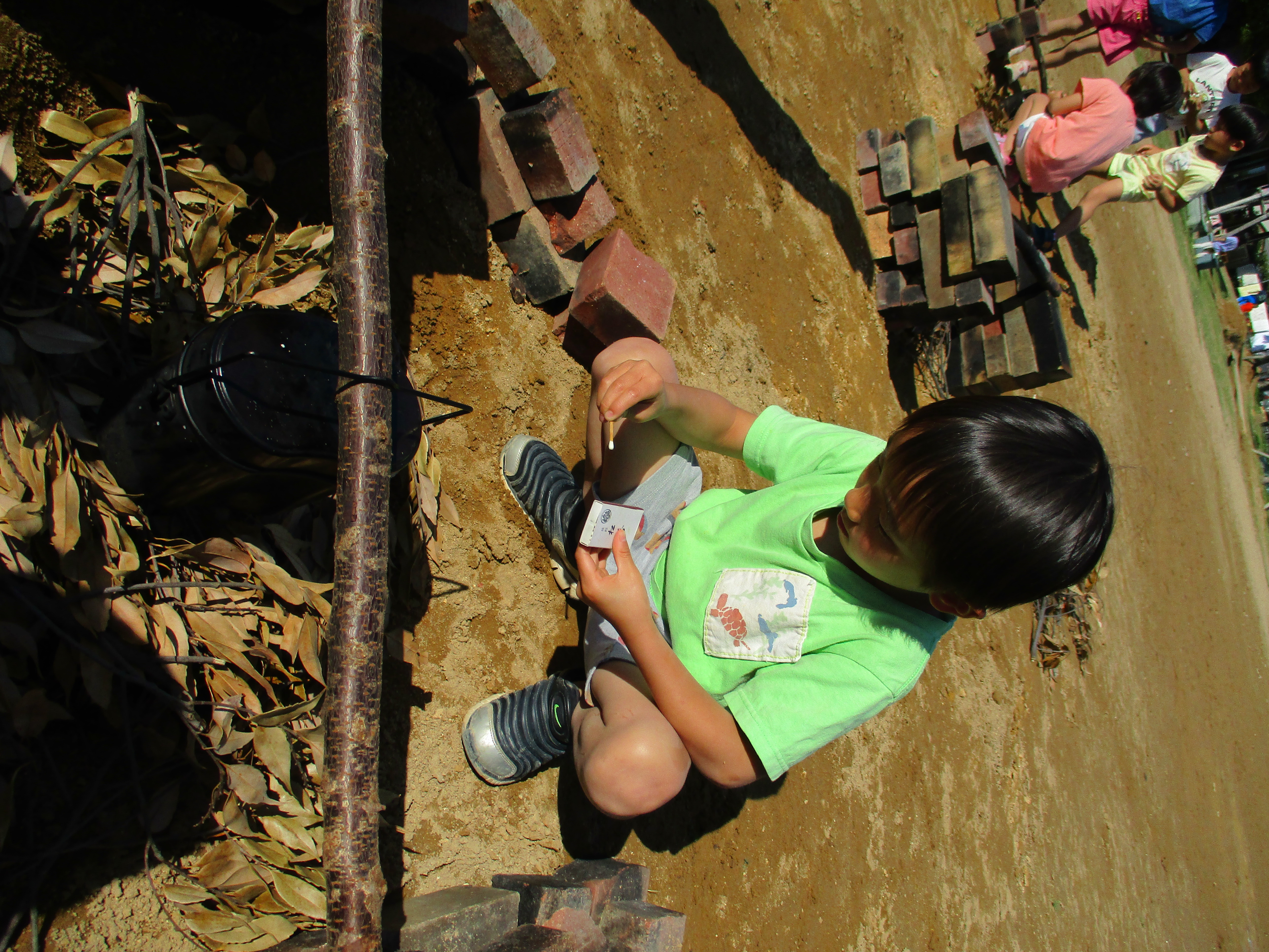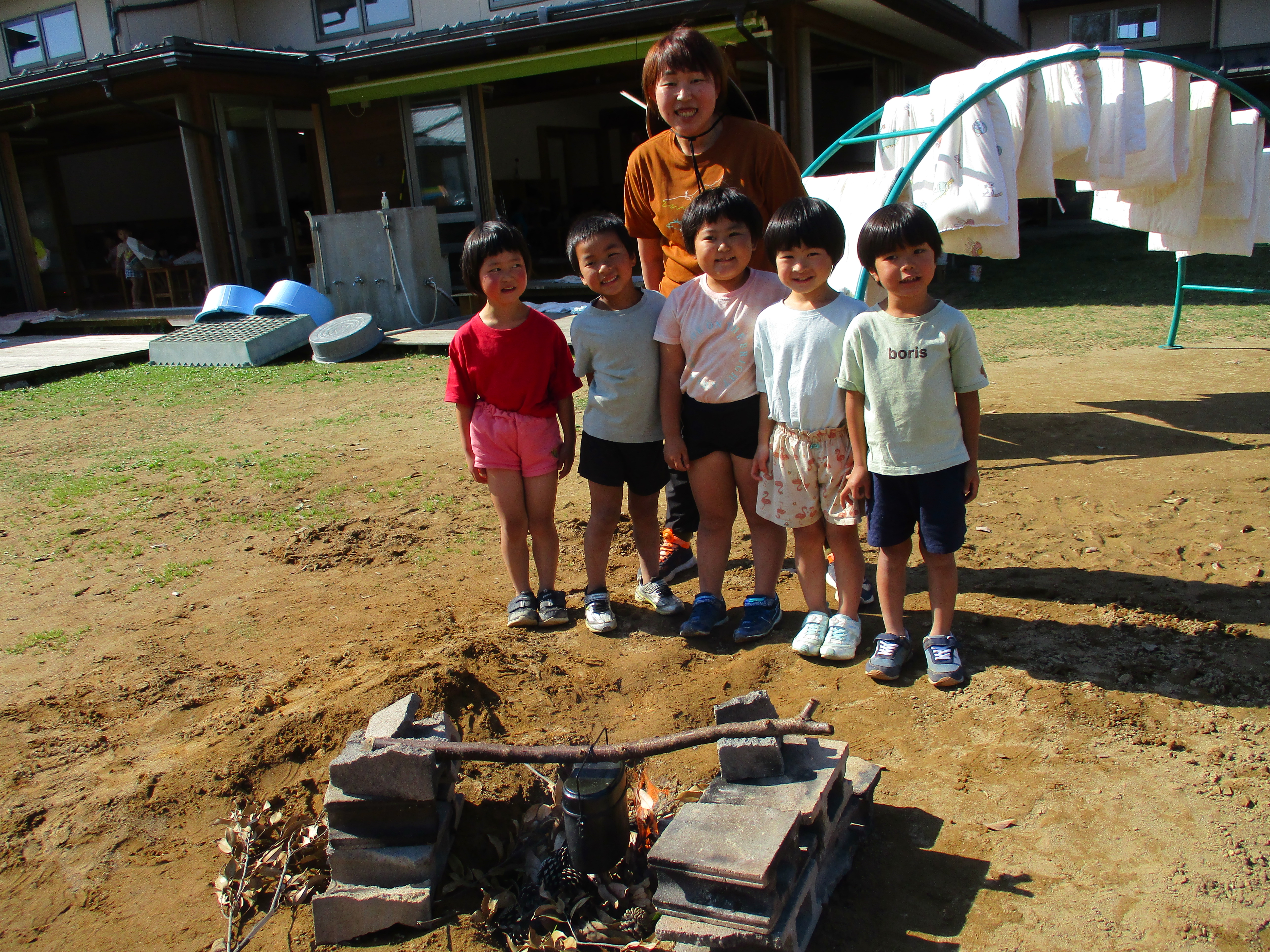 グループごとにかまど作りです。