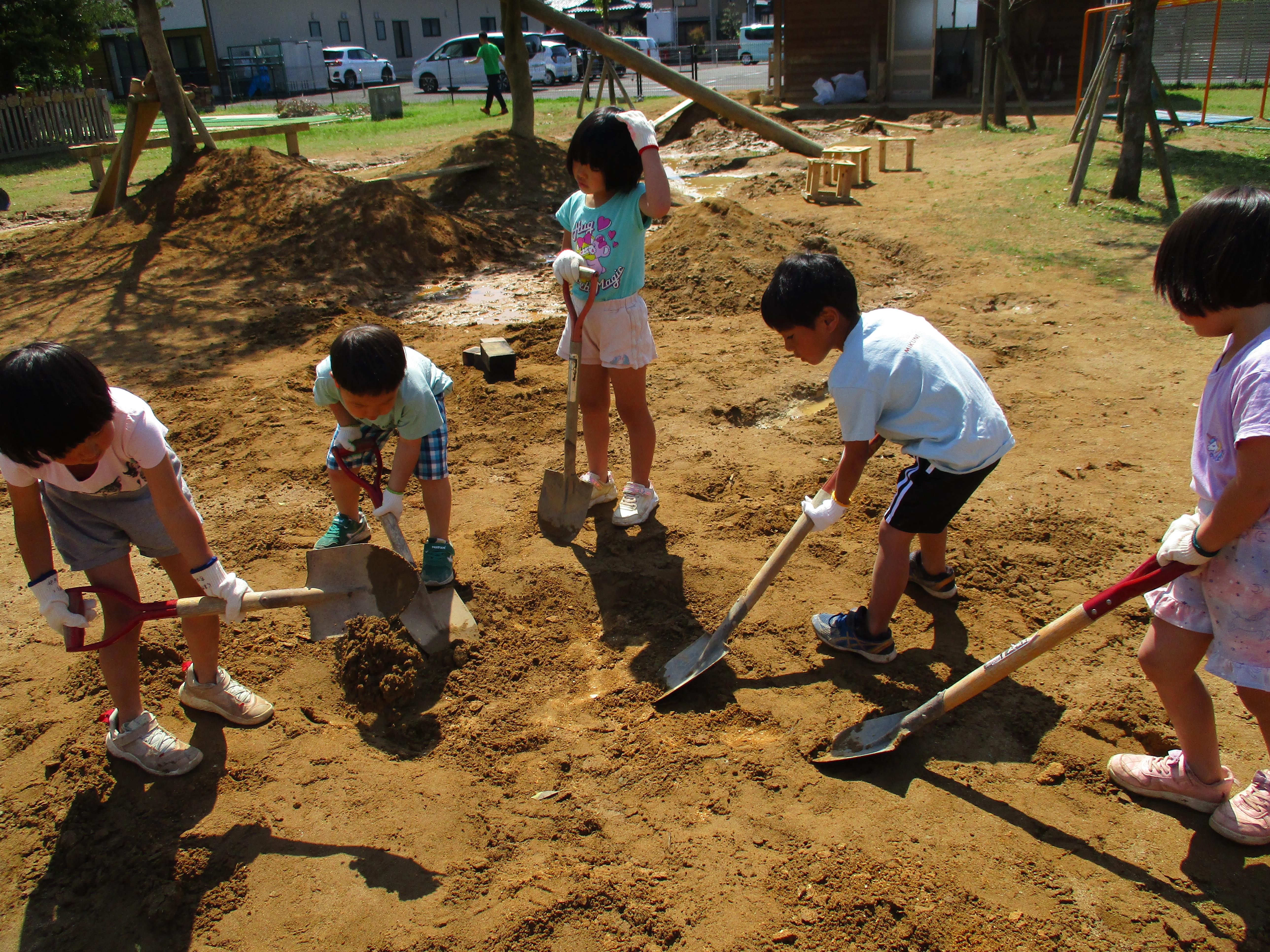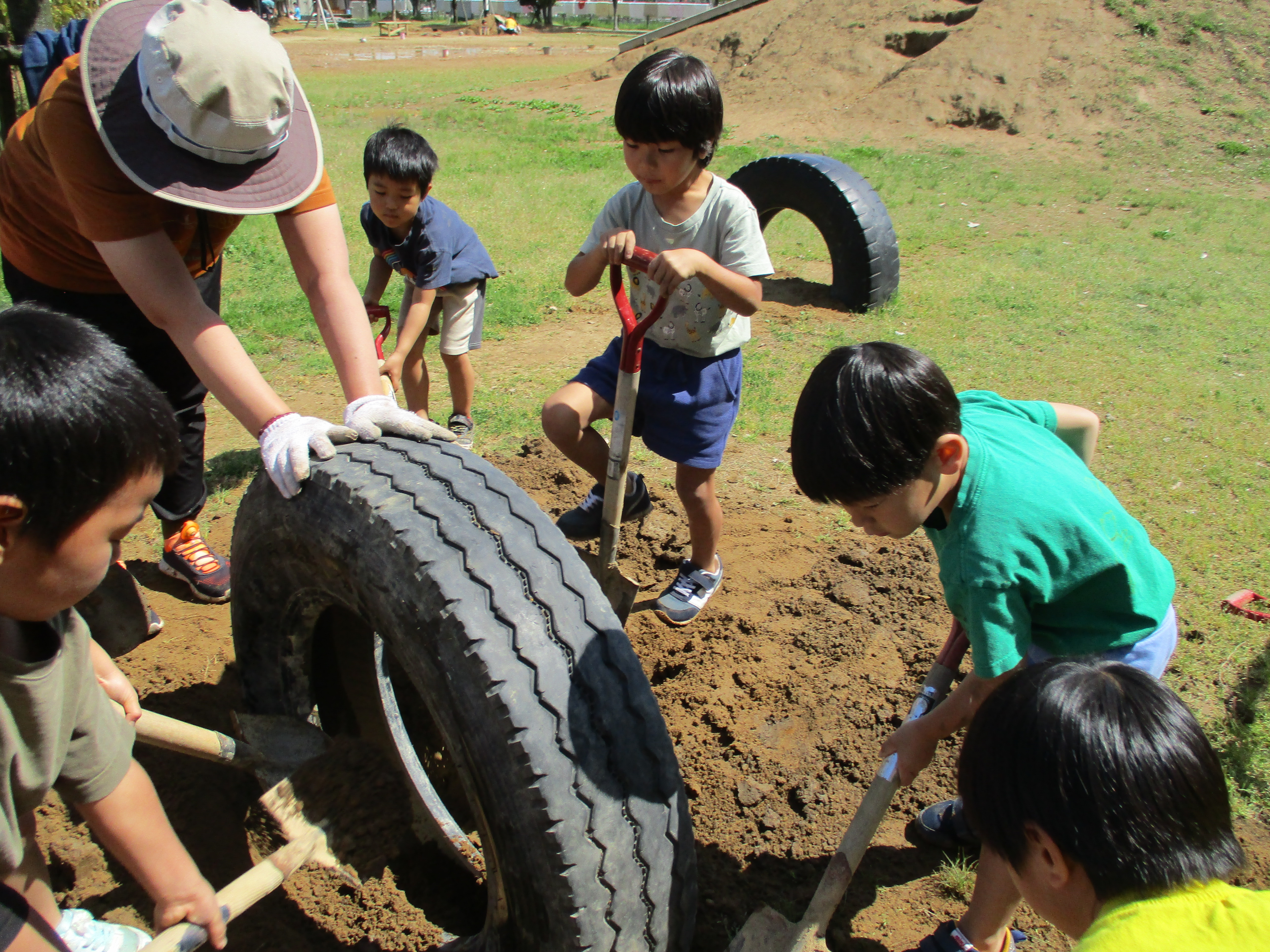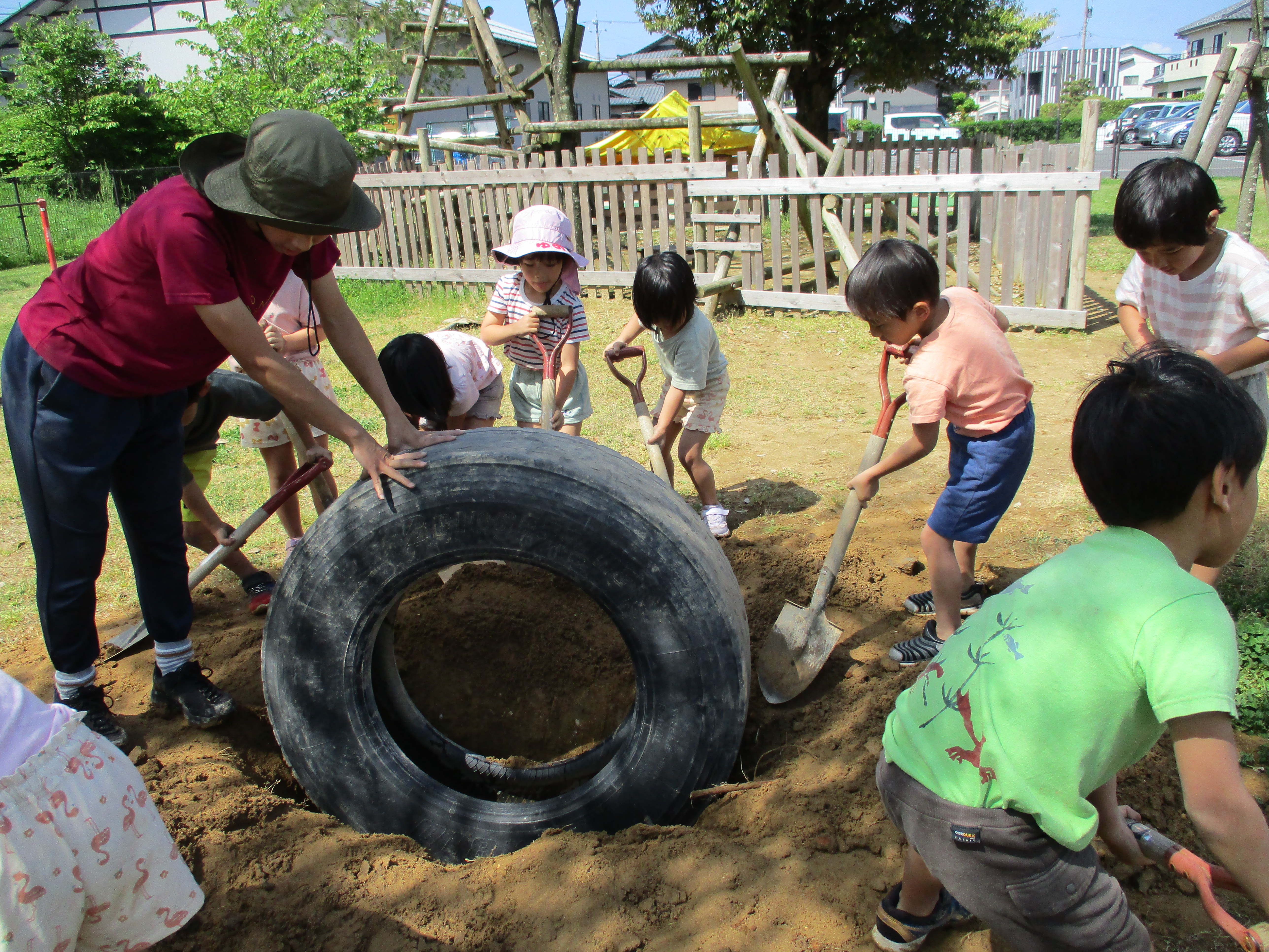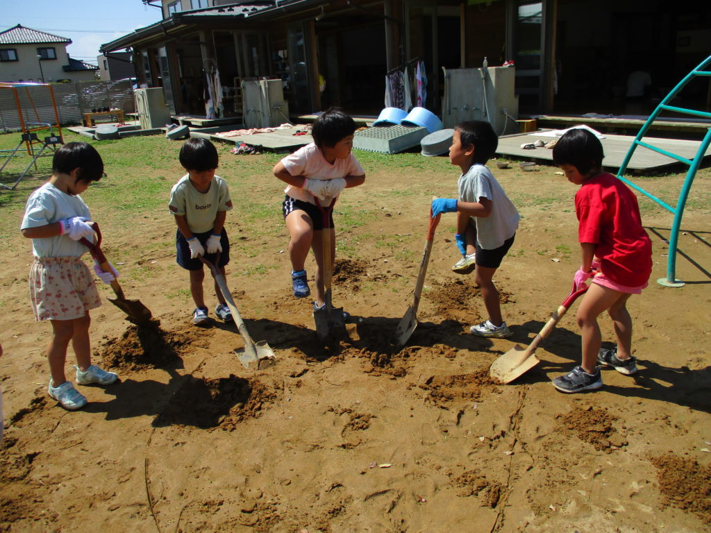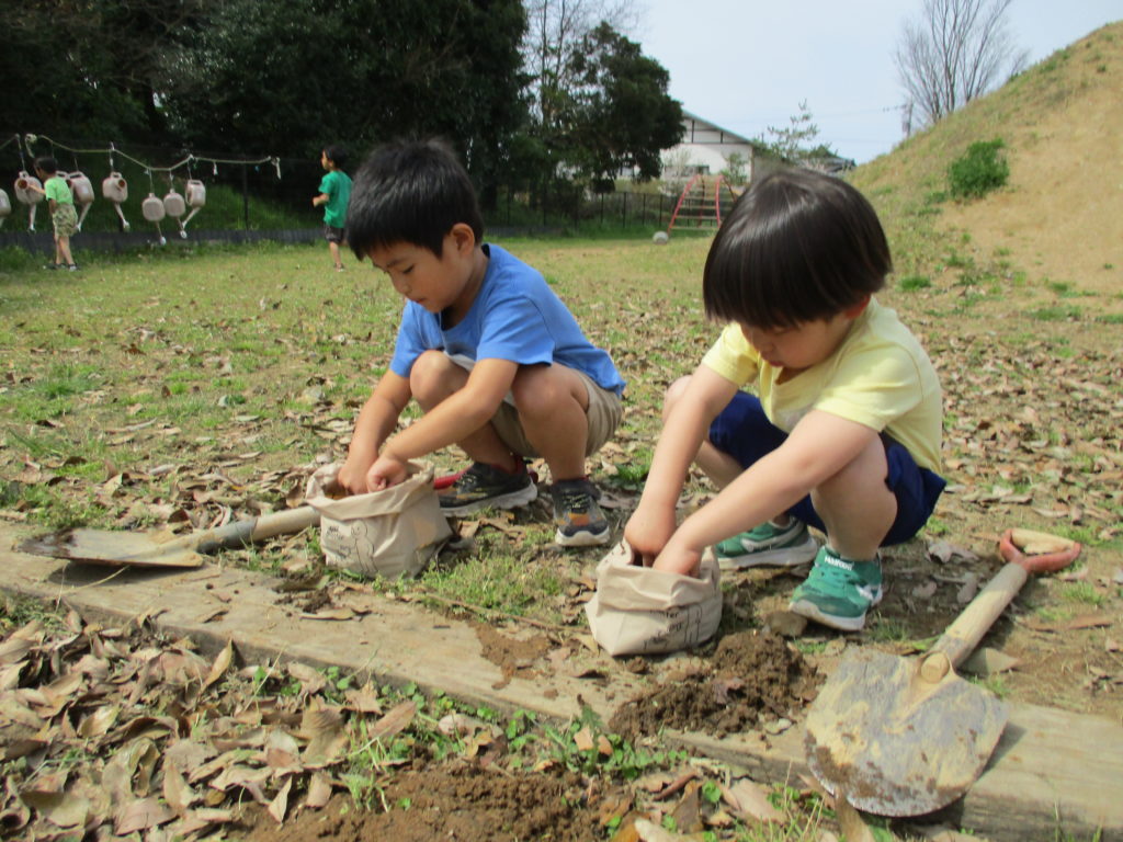 グループごとにかまど作りです。