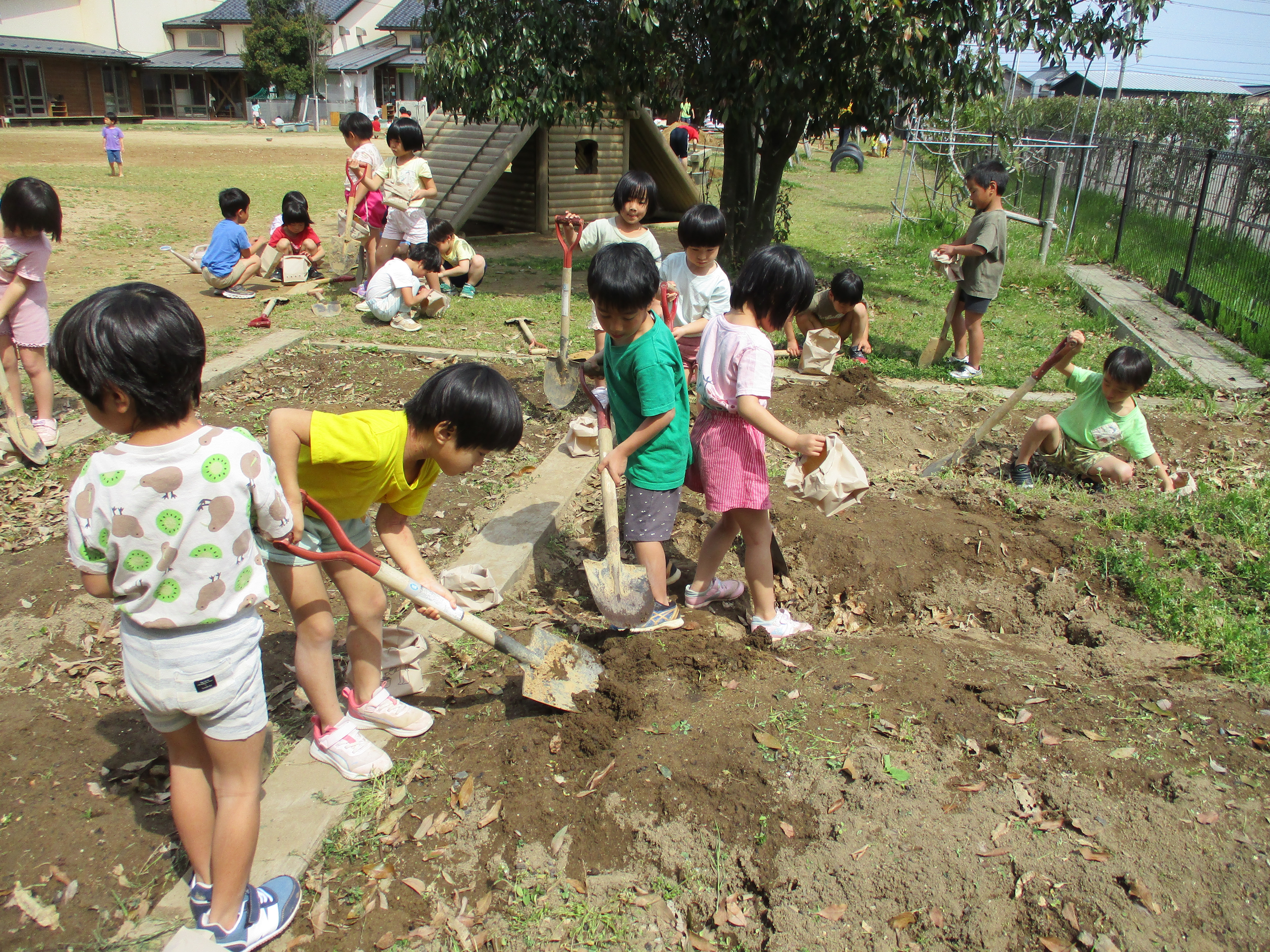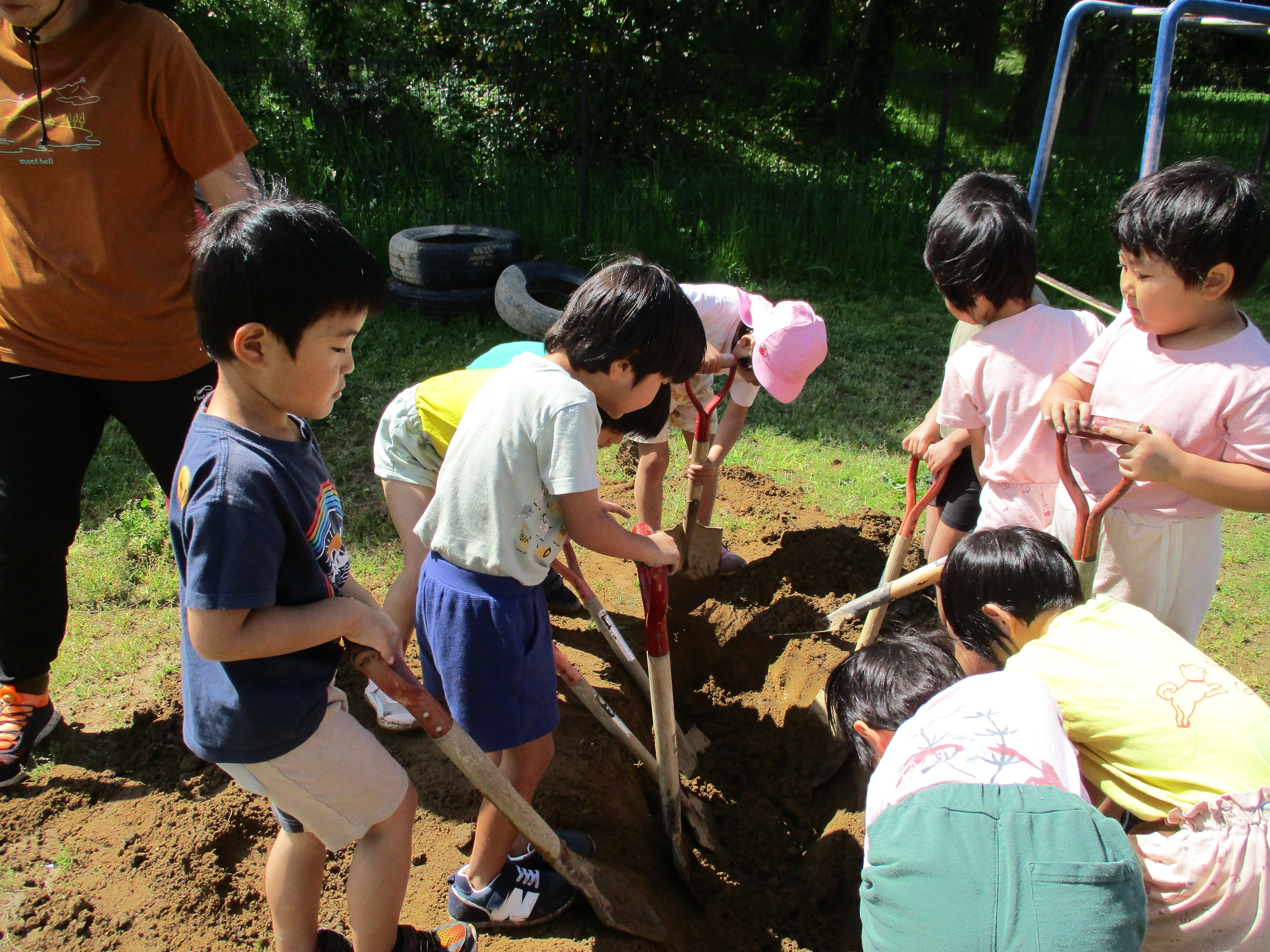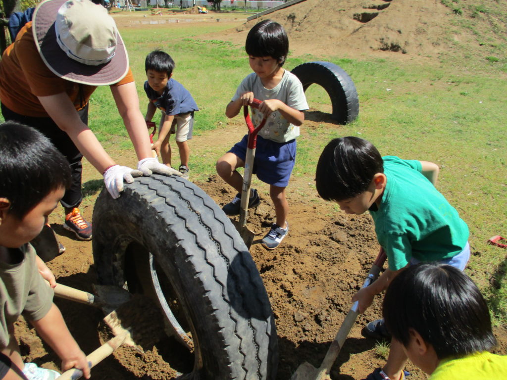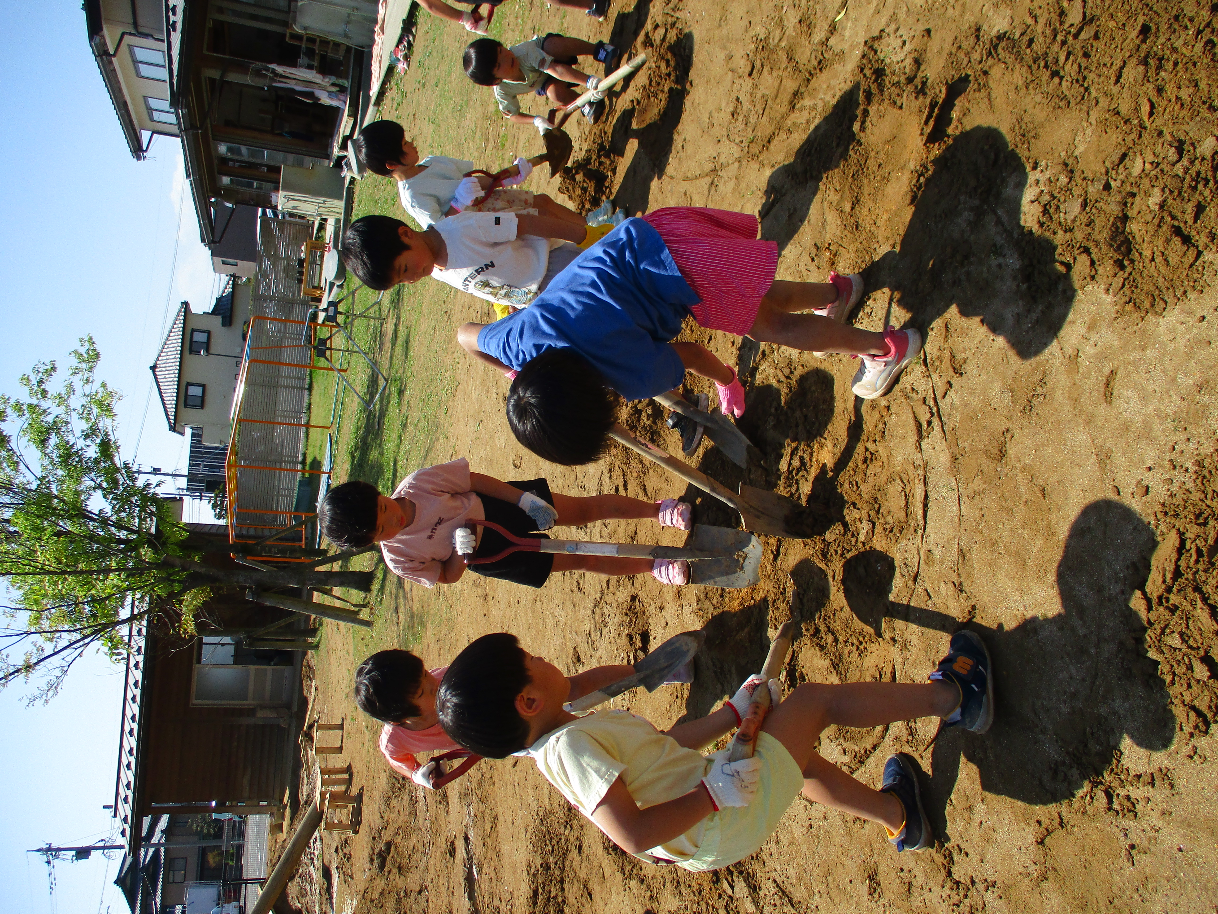 グループごとにかまど作りです。