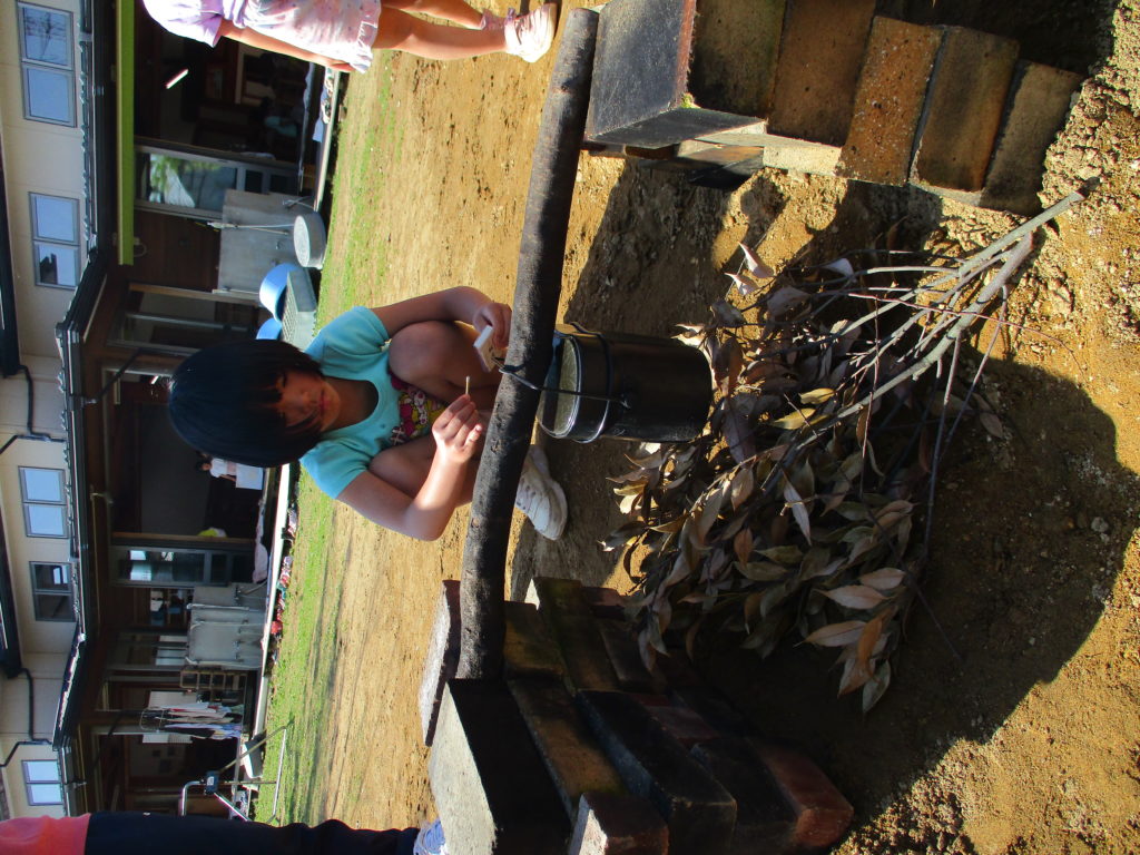 給食を食べてからは、飯盒炊爨をしました。